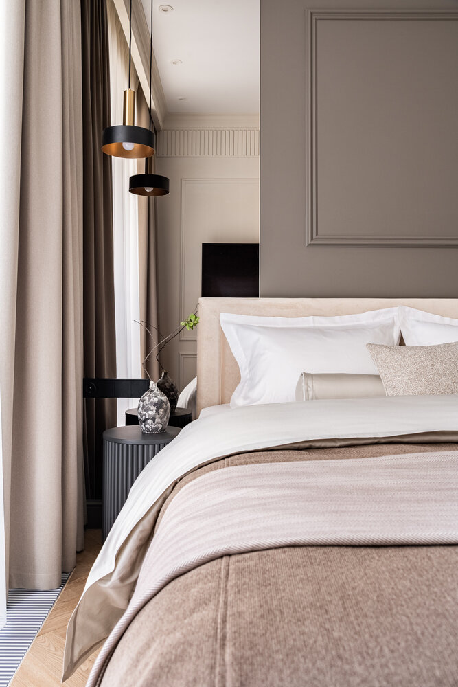Фотография: Спальня в стиле Классический, Современный, Квартира, Проект дня, 2 комнаты, 40-60 метров, Анна Жижайкина, современный с элементами неоклассики – фото на INMYROOM