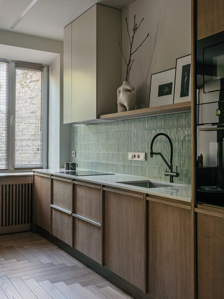 Фотография: Кухня и столовая в стиле Современный, Квартира, Проект дня, Минск, Мария Зайцева, Сталинка, Кирпичный дом, 2 комнаты, 40-60 метров, современный с элементами минимализма и эко-стиля – фото на INMYROOM