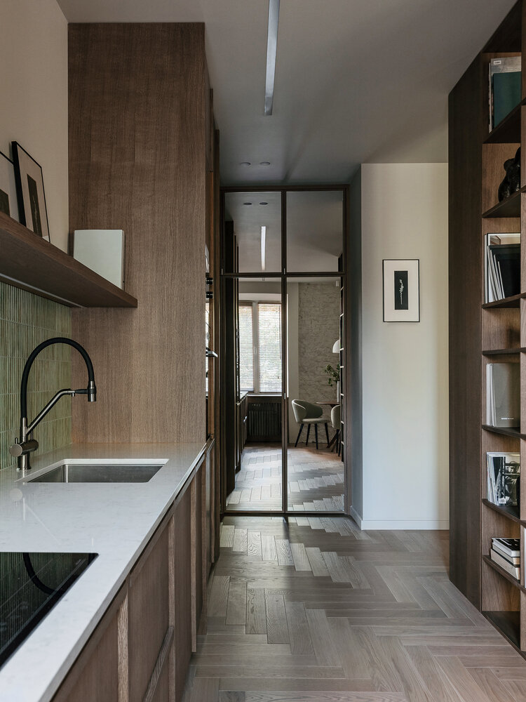 Фотография: Кухня и столовая в стиле Современный, Квартира, Проект дня, Минск, Мария Зайцева, Сталинка, Кирпичный дом, 2 комнаты, 40-60 метров, современный с элементами минимализма и эко-стиля – фото на INMYROOM