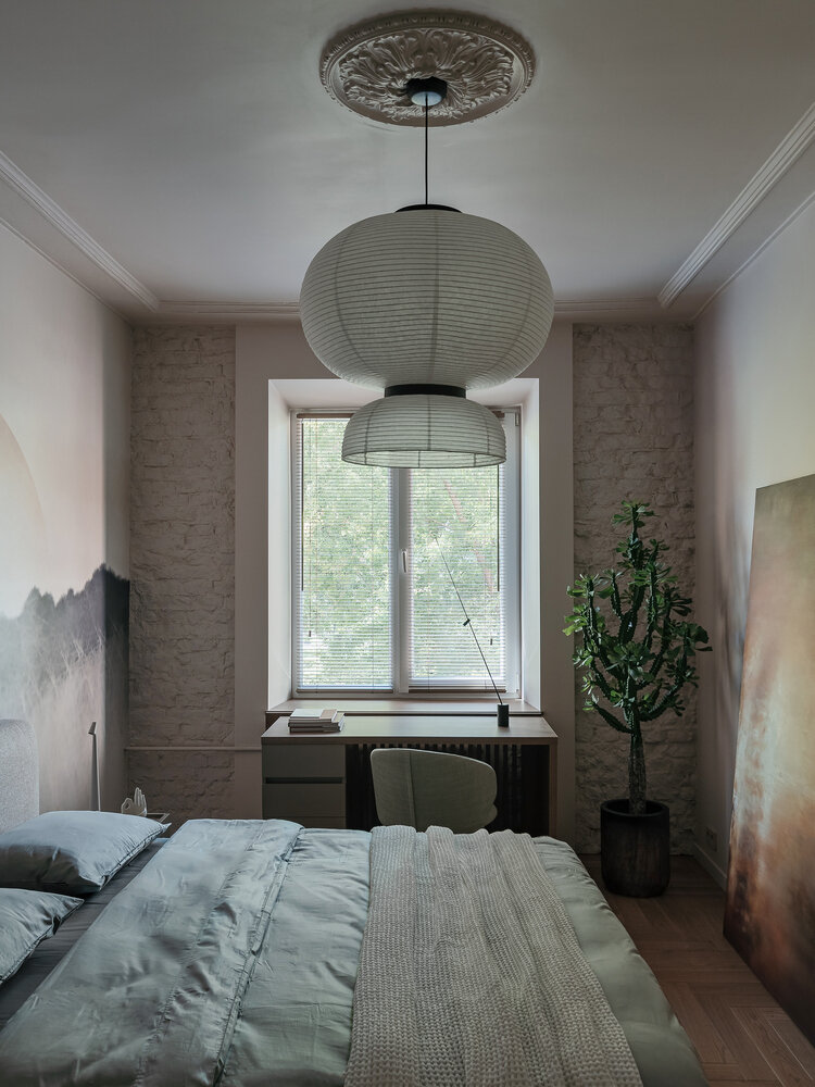 Фотография: Спальня в стиле Современный, Квартира, Проект дня, Минск, Мария Зайцева, Сталинка, Кирпичный дом, 2 комнаты, 40-60 метров, современный с элементами минимализма и эко-стиля – фото на INMYROOM