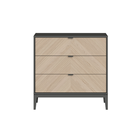 Ищете компактное хранение, которое добавит стиля интерьеру? Комод Fjord с тремя вместительными ящиками экономит пространство и привносит скандинавскую эстетику благодаря уникальному рисунку "елочка" из натурального шпона дуба. Высота 90,4 см — оптимальная для спальни или прихожей. Три главных преимущества: - Эксклюзивный узор "елочка" — создает элегантный акцент даже в минималистичном интерьере - Три просторных ящика на бесшумных направляющих — открываются легким движением и закрываются плавно благодаря доводчикам - Прочная конструкция из массива бука — выдерживает повседневные нагрузки и прослужит годами Комод идеально впишется в помещение от 9 м². Компактные размеры (91 × 49 см в основании) позволяют разместить его даже в небольшой спальне. Подойдет как для молодых пар, так и для семей, ценящих скандинавский стиль и функциональность. Три ящика обеспечивают достаточно места для хранения белья, одежды или аксессуаров. Технические особенности: - Корпус из МДФ под эмалью — устойчив к влаге и перепадам температур - Фасады из тонированного шпона дуба — сочетание натуральной фактуры и современной обработки - Контрастное сочетание бежевого и серого — универсально вписывается в любую цветовую гамму - Матовая поверхность — не бликует и скрывает следы от пальцев - Ножки из массива бука — обеспечивают устойчивость на любом напольном покрытии Уход за комодом прост: достаточно протирать поверхности сухой или слегка влажной тканью без агрессивных моющих средств. Сборка требуется, но конструкция интуитивно понятна даже непрофессионалу.Инструкция по сборке