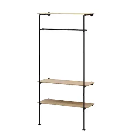Комплект Pipe – отличный выбор для тех, кто находится в поиске оригинального стиля и ценит функциональность. Компактная и практичная система PIPE23BL_BO для хранения одежды. Мини-гардеробная заменит громоздкий шкаф и идеально подойдет для небольших комнат, прихожей или гардеробной зоны. Прочная металлическая конструкция выдерживает большой вес, а продуманная компоновка включает все необходимое: верхнюю полку для несезонных вещей, коробок и головных уборов, перекладину для вешалок и две удобные полки снизу для горизонтального хранения джинс, кофт, обуви и сумок. Легко собирается и моментально наводит порядок в вашем пространстве. Современный и функциональный вариант организации порядка в стиле лофт. Не только место хранения, но и стильный элемент интерьера, который будет радовать вас каждый раз, когда вы будете использовать его.