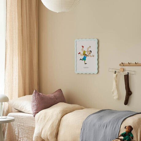 Пеппи Длинныйчулок — вечный персонаж, созданный шведской писательницей Астрид Линдгрен. Обладая добротой, оранжевыми косами, веснушчатым лицом и недюжинной силой, Пеппи ведет полную приключений жизнь на вилле Кунтербунт в сопровождении своего коня Маленького дяди и обезьяны мистера Нильссона. С 1945 года Пеппи покорила сердца читателей всего мира и стала любимым символом свободы, силы и необычности. Изображения проиллюстрированы Ингрид Ванг Найман. Иллюстрация Пеппи Длинныйчулок, борющейся с цирковым силачом через голову. Под картинкой на английском языке написана цитата Пеппи. Мотив расположен на бежевом фоне.