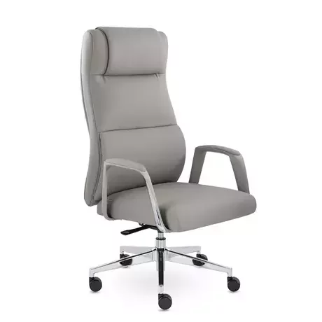Широкое кресло с увеличенным мягким подголовником обеспечивает отличную поддержку спины и шеи. Изящные пластиковые подлокотники со вставками "под хром" и мягкими накладками гармонично сочетаются с хромированной крестовиной, придавая креслу элегантность. Механизм кресла позволяет регулировать высоту сиденья, отклонять спинку на 165 градусов и фиксировать наклон в любом положении. В наличии два изысканных цвета — кофейный и классический черный, которые подойдут под любой интерьер кабинета руководителя.