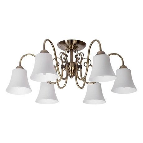 Производитель: MW-Light; Коллекция: Моника; Количество ламп: 6; Мощность лампы, W: 60; Общая мощность, W: 360; Площадь освещения, м2: 20,00; Тип лампочки (основной): Накаливания; Лампы в комплекте: Нет; Тип цоколя: E14; Напряжение, V: 220; Степень защиты, IP: 20; Виды материалов: Стеклянные; Материал арматуры: Металл; Материал плафонов: Стекло; Цвет: Белый; Цвет арматуры: Бронза; Цвет плафонов: Белый; Место установки: На потолок;